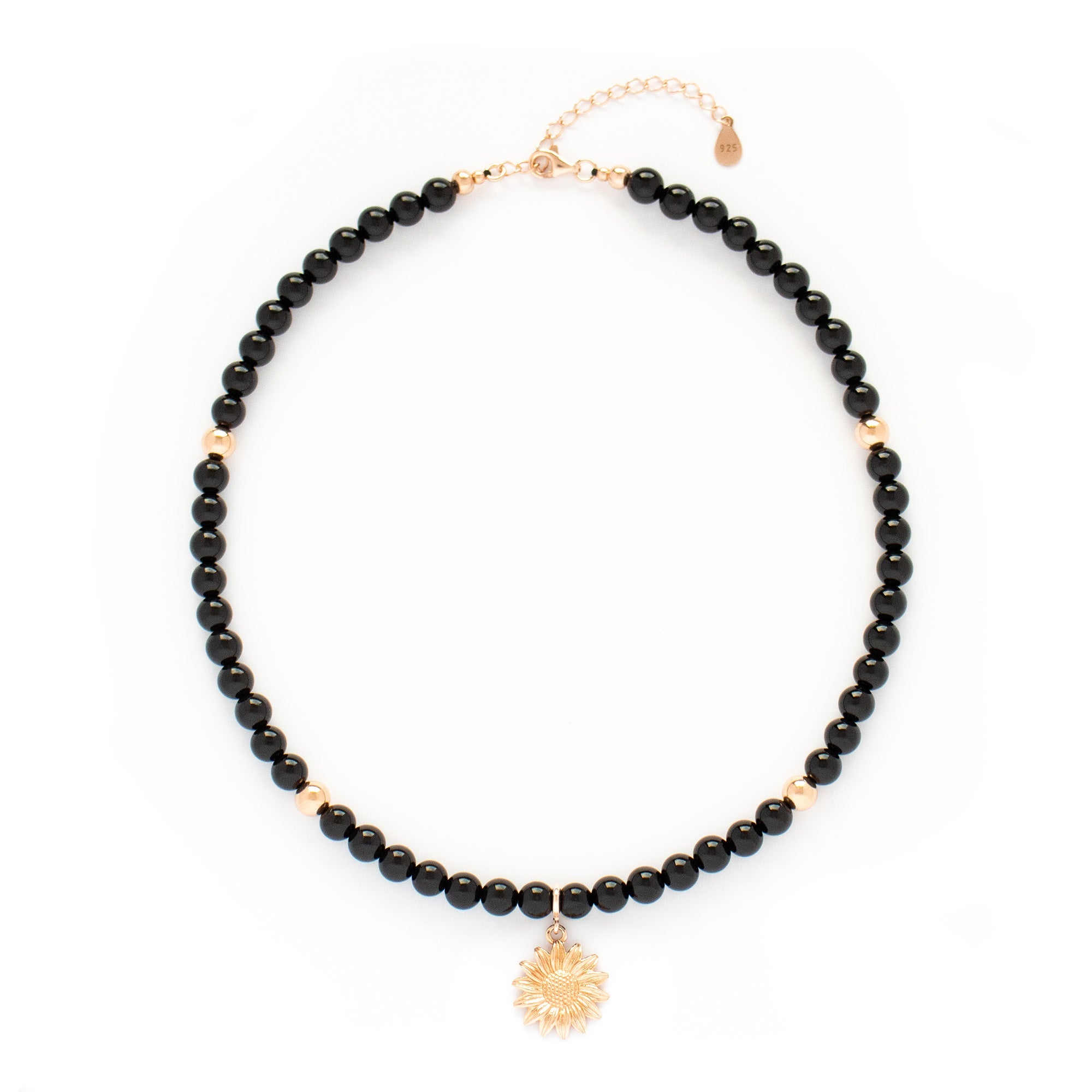 Jewelry primarily incorporates natural Black Onyx, which lend an undeniable aura of sophistication and elegance to each piece. These remarkable gemstones are meticulously enhanced with accents of sterling silver with a choice of plating of 18K Gold or 18K Rose Gold.