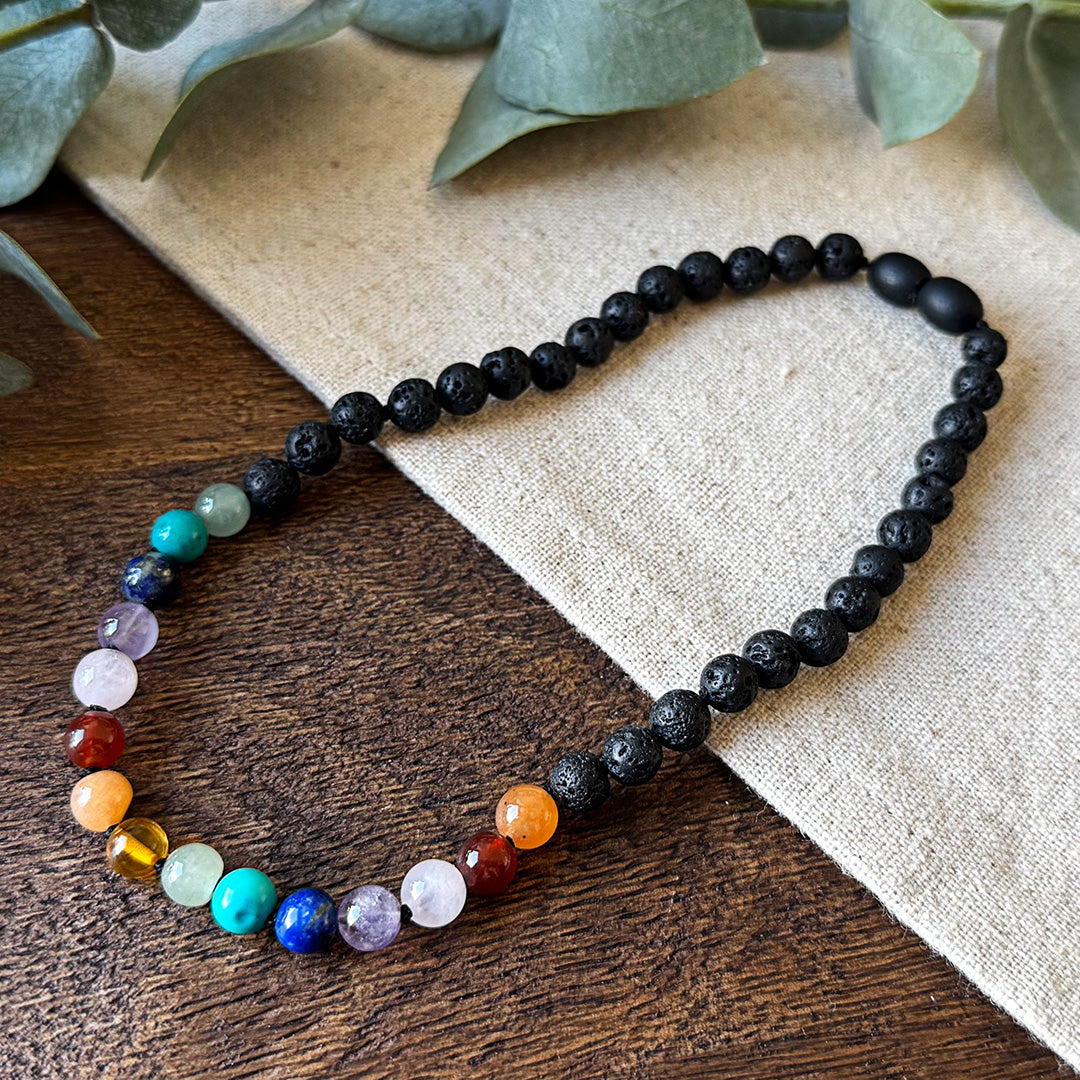 Lava Rock & Chakra Rainbow gemstones necklace