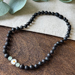- This necklace connects you to nature's ancient wisdom while expressing your appreciation for handmade artistry. The warm amber energizes your spirit, the shell flower celebrates your feminine power, and the Green Aventurine opens your heart to new possibilities.